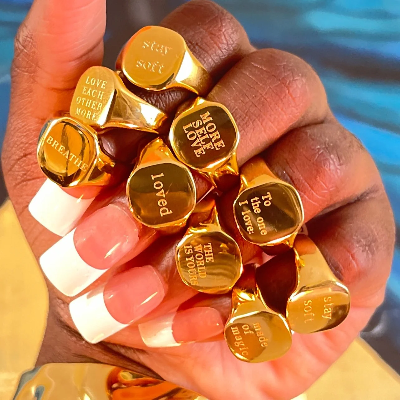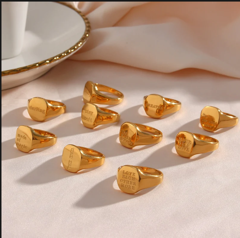 All / JEWELRY / RINGS RINGS Clear Trendy | Affirmations | Initial Rings | Filters Categories All JEWELRY ANKLETS NECKLACES RINGS Trendy Affirmations Initial Rings BRACELETS Custom bracelets Heart miyaki bracelets EARRINGS BABY/KIDS PERSONALIZED earrings bracelets anklets Necklaces and nameplates EXCLUSIVE ADMIRE SETS MERCH BODY JEWELRY Belly button rings Tragus jewelry Nose rings Filter Clear Filter Quick View Dome ring $12.99 Silver Gold Purchase Added! Quick View So wavy rings $14.99 Silver gold Purchase Added! Quick View His love cross ring $30.00 View Options Quick View Initial rings $119.99 A B C D E F G H I J K L M N O P Q R S T U V W X Y Z Purchase Added! Quick View Affirmation rings $30.00 View Options Quick View Chunky Twist Ring from $24.99 View Options No results found No results match your search. Try removing a few filters.
